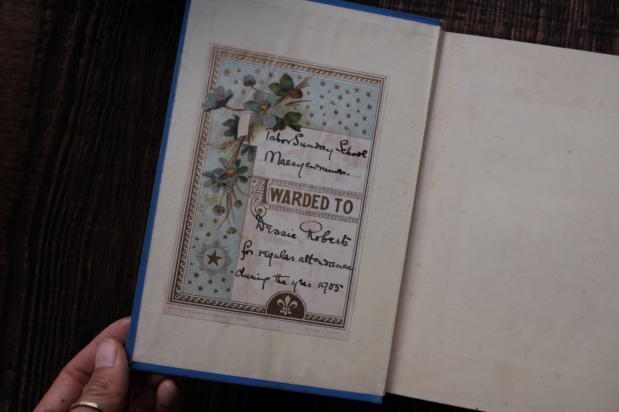 The book is in good condition but does not come with dust cover and is in original blue cloth with decorative front cover and spine. Pages and illustrations have light tanning and foxing throughout. Prize plate stuck to front pastedown as shown in the photos. Binding is slightly loose, but all the pages remain attached. Slight crushing to spine ends and there is staining to rear board.